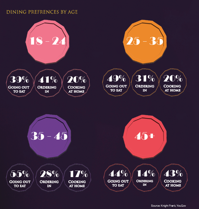 Older respondents (those over 45) are more likely to cook at home (43%) compared to just 20% of those under 25. When it comes to ordering a takeaway, 41% of under-25s are keen on ordering in, while among those over 45 years, the figure stands at 14%.